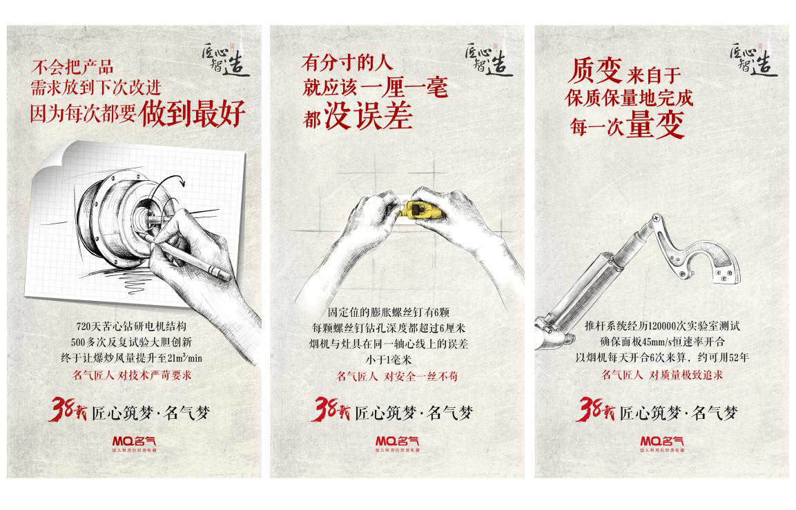 《匠心智造》入選企業(yè),名氣廚電的匠心之路 來源:名氣廚房電器 時間:2018年03月30日 “ 只要擁有一種純粹為了把事情做好而好好工作的欲望,我們每個人都是匠人。”前不久,美國著名社會學(xué)家理查德·桑內(nèi)特在其新書《匠人》中如是說。匠心,早已走出手工匠的范疇,成為各個領(lǐng)域里追求專業(yè)和極致的代名詞。名氣廚電將在10月底開機拍攝《匠心智造》企業(yè)紀(jì)錄片,期待與你一起揭秘經(jīng)久耐用的黃金品質(zhì)下匠心永存的名氣廚電! 《匠心智造》企業(yè)紀(jì)錄片,全面助力名氣品牌升級 在激烈的市場競爭中,企業(yè)要長遠(yuǎn)發(fā)展必須具備軟、硬實力。軟實力是企業(yè)的品牌,品牌這一軟實力的構(gòu)建在很大程度需要借助于廣告有效傳播,廣告被視為企業(yè)軟硬實力升級 、品牌擴張的一個重要指標(biāo)。眾所周知,名氣具備良好的企業(yè)形象與過硬的產(chǎn)品品質(zhì),通過層層審核和篩選,拍攝《匠心智造》企業(yè)紀(jì)錄片無疑是對名氣廚具“匠心”品質(zhì)最好的認(rèn)可。 名氣將傳統(tǒng)手工業(yè)者的匠人精神遷移到現(xiàn)代工業(yè)化制造體系中,每一個風(fēng)量的突破,每一個凈網(wǎng)的設(shè)計,每一處細(xì)節(jié)的處理,名氣都做到精益求精。名氣堅持初心,將“經(jīng)久耐用”的品牌定位貫徹始終,品牌全面升級2.0將順利在全國各地展開。 匠心是經(jīng)久耐用的品質(zhì) “三百六十行,行行出狀元”,在廚具這個行業(yè)中,名氣38年來始終專注于廚衛(wèi)行業(yè),將名氣“經(jīng)久耐用”的形象深深植入消費者心中。名氣廚房電器是一個具有精工制作意識的企業(yè),一個產(chǎn)品的每個環(huán)節(jié)、每道工序、每個細(xì)節(jié)都精心打磨、精益求精,專注、精確、極致、追求卓越。在工業(yè)化生產(chǎn)體系下,名氣深知“匠心精神”不只是對某種技藝的堅守和傳承,更意味著對“匠人智慧”的激發(fā),用創(chuàng)造性的思維推動企業(yè)產(chǎn)品服務(wù)的升級優(yōu)化,構(gòu)筑企業(yè)自身的核心競爭力,提升品牌的溢價空間。 2017年,對名氣來說注定是不平凡的一年。從高鐵“名氣號”開動至中國主干線,到那英全新TVC在播出,再到全年全媒體強勢廣告投放,加上此次《匠心智造》企業(yè)紀(jì)錄片拍攝,名氣品牌升級2.0口號已全面打響,相信在如此強大的攻勢下,將迅速率提升名氣知名度,提升名氣品牌影響力! Last:中國人選什么牌子的油煙機燃?xì)庠詈茫?/a>Next:注意這幾點,選好家用抽油煙機沒壓力!