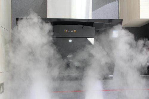 在水霧鍋中滴入稍許香水,打開水霧鍋,讓充滿香氣的霧氣彌漫整個空間,模擬爆炒時產(chǎn)生的大量煙霧和濃濃的油煙味。