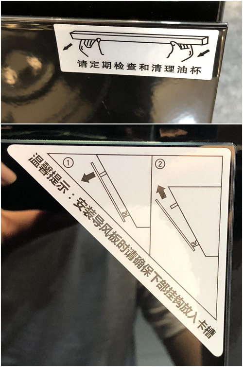 油杯和鋼化玻璃導(dǎo)煙板上都貼有提示的小圖標,幫助消費者迅速學(xué)會拆卸和安裝,細節(jié)之處做得體貼入微。