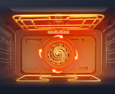 四根加熱管配合強(qiáng)勁循環(huán)風(fēng)扇,高溫雙向垂直熱場(chǎng),與平行熱場(chǎng)相互交疊,全方位加熱食材,外酥里嫩,烤色誘人