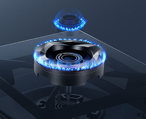 45°黃金火焰角 完美包裹鍋具,全進風(fēng)方式,全方位供氧,燃燒更充分 無極火力調(diào)節(jié),滿足蒸烤炸煮各種需求