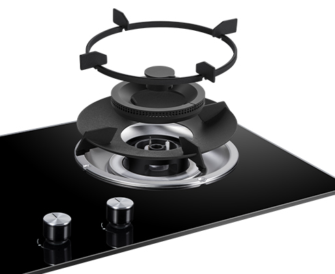 底盤+內(nèi)、外火蓋+內(nèi)、外混氣室+點(diǎn)火裝置=超穩(wěn)態(tài)燃燒結(jié)構(gòu),形成穩(wěn)定燃?xì)鈿饬鳎乐闺x焰或回火。