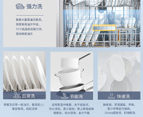 針對(duì)不同程度油污和洗滌需求,設(shè)置了4種清洗模式,并搭配“加強(qiáng)干燥”、“24小時(shí)預(yù)約洗滌”,既搞定清潔問(wèn)題,又節(jié)能環(huán)保。